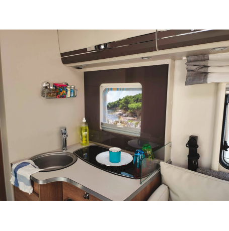 Conçu pour les espaces restreints, ce rangement est idéal pour les cuisines de petite taille typiques des véhicules de loisirs. Grâce à sa fixation murale, il libère de l’espace sur les plans de travail tout en offrant une grande capacité de stockage pour ses dimensions. Discret et fonctionnel, il permet d’optimiser l’espace en s’adaptant parfaitement aux contraintes des petits espaces. C’est la solution idéale pour une cuisine bien rangée et organisée, même sur la route.